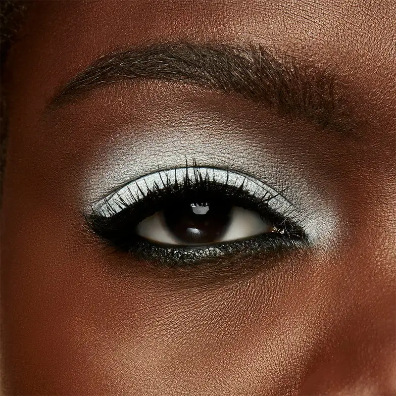 Du kan ikke bare bruke den som øyenskygge eller øyenskyggebase, men også som eyeliner! Ta den skrå børsten eller den lille eyelinerbørsten og lag en vinge. Noen nyanser er litt mer gjennomsiktige, så du trenger kanskje to tynne lag for full dekning.