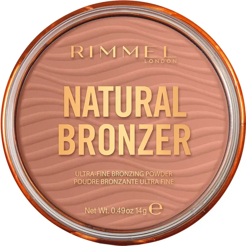 Med Rimmel Londons Natural Bronzer får du en naturlig solkysset hud i ansiktet året rundt! Den fine, fløyelsmyke konsistensen gjør at huden blir myk og får en naturlig solkysset glød. Natural Bronzer har en matt formel som er vannfast og som beskytter mot solens skadelige stråler med SPF 15. Den er enkel å påføre, og sitter i opptil 10 timer. Kan også brukes på hals og bryst.